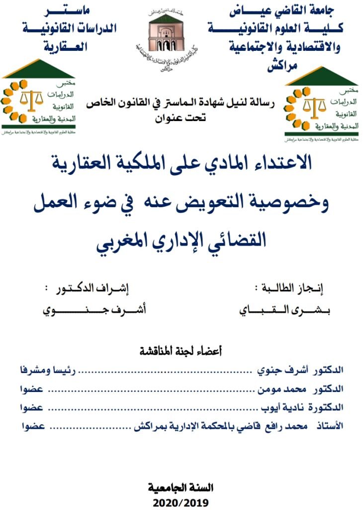 - الإعتداء المادي على الملكية العقارية وخصوصية التعويض عنه في ضوء العمل القضائي المغربي