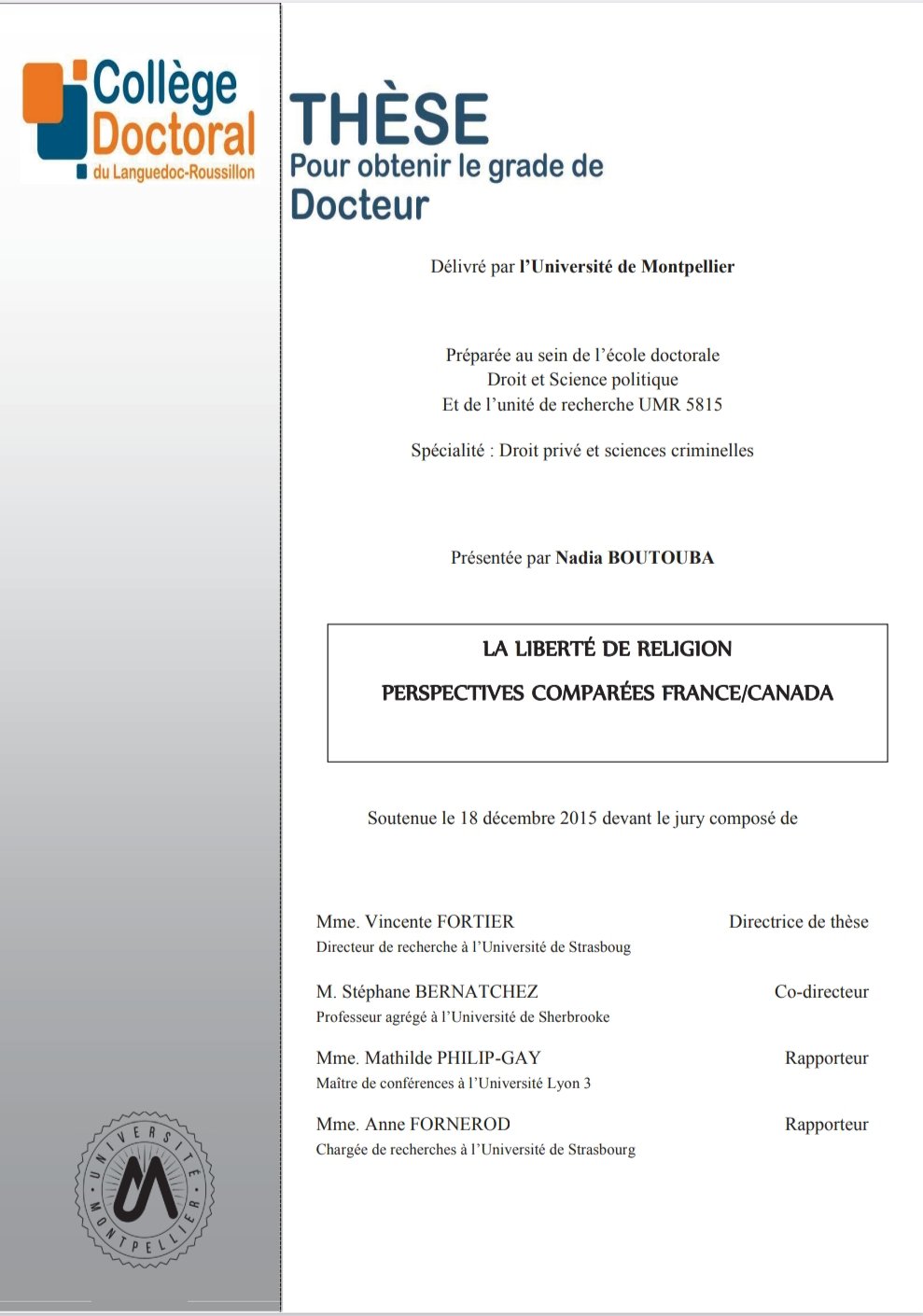 Le travail de thèse consistera à comparer notamment les décisions françaises et canadiennes afin de distinguer le